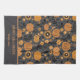 A cute and pretty Happy Halloween kitchen towel featuring pumpkin and floral patterns in orange and black, perfect for families looking for fun and modern ways to celebrate Halloween this fall.