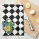 Toalla de cocina de 16" x 24" con una imagen de estilo negro y blanco, un patrón popular en los años 80, y un arco verde adornado con rosas satinados azules y amarillos. Ver la servilleta de tela, la servilleta de coctel de papel, la posavasana de tela, la posavasalladora de papel y las posavasos. Vea toda la colección de toallas de cocina tubular de los años 80 en el FOOD/BEV| Sección de líneas.