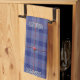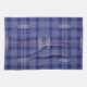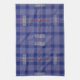 Llamamos al diseño original de HomeWare en esta toalla de cocina "Mad Plaid in Blue". El patrón es un manto básico en tonos azul celeste. Sobre este fondo hay dos líneas rojas onduladas, una horizontal y otra vertical, que atraviesan el centro del diseño. Las líneas son tridimensionales, arrojando sombras sobre la plataforma, y hay un botón rojo redondo en el centro, donde las líneas se cruzan. En los extremos de las líneas rojas, en cuatro lados, hay bloques de líneas blancas onduladas y texturadas. También hay líneas de puntos rojos que recorren la parte azul más clara de la manta. Se parece un poco a un paquete, todo sellado y pegado. Así, el nombre "Mad Plaid in Blue".