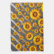 Paño De Cocina Hermosas flores amarillas sobre rayas grises y pla