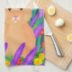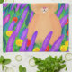 ¡La primavera ha surgido en esta toalla de cocina de Pascua! Sorprenda a su familia y a sus huéspedes con un resplandor de sol. Un campo de flores violetas y amarillas se extiende bajo un brillante cielo azul, con un malicioso conejo de Pascua saltando por ahí. Es la tarjeta perfecta para personalizar con una "Pascua feliz". O mensaje de celebración de primavera Esta toalla está garantizada para traer una sonrisa (¡y tal vez una feliz caza de huevos de Pascua!) Ilustracion: Original Fantabuloustef Pintura