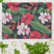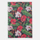 Paño De Cocina hibiscos rojos, orquídeas, acuarela tropical.