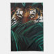 Un tigre asomándose a las hojas de la selva verde cazando a su presa