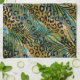 Paño De Cocina Hojas de palma sobre un fondo de leopardo.