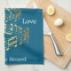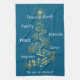 Apron Christmas Edition Stunning teal blue backdrop of golden hued sheet music dancing off tray and wording Peace on Earth, We are so Blessed, Family, Friends, Happiness, Peace.