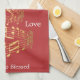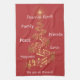Apron Christmas Edition Stunning christmas red backdrop of golden hued sheet music dancing off tray and wording Peace on Earth, We are so Blessed, Family, Friends, Happiness, Peace.