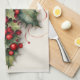 Hermoso hueco verde con colgaduras de bayas rojas brillantes en la parte delantera de esta espectacular toalla de cocina para Navidades.