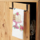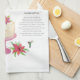 Pretty kitchen towel featuring a recipe for a delicious hummingbird cake and Anna's and Broad-billed hummingbirds on a light pink background. All watercolor images by C. Dobbins.