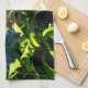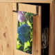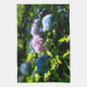 Kitchen towel featuring a photo of hydrangea flowers in a garden in the summer.
