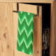 Toalla de cocina en un trazo Ikat chevron / costura de llama con una textura estriada, tejida - verde pino oscuro, verde esmeralda medio y verde lima pastel
