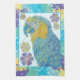 Paño De Cocina Ilustracion floral de macao amarillo azul vibrante