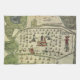 Ilustración vintage de un mapa antiguo del mundo que muestra parte del Imperio Azteca en el centro de México con un templo en el centro probablemente utilizado para sacrificios humanos. La iglesia o templo está rodeado por un cementerio con lápidas y cruces. Aproximadamente 1577. Azteca se refiere a los mexicas de Tenochtitlan, ahora la ubicación de la Ciudad de México.