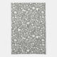Una toalla verde azulada de color gris pálido y marfil tintado con motivos botánicos, perfecta para un regalo de bienvenida.