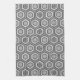 El kimono tradicional japonés imprime toalla de té - hexágonos anidados con un motivo central de flor en gris oscuro / gris, blanco y negro sobre un fondo gris plateado claro