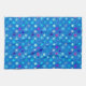 Toalla de cocina en un estilo moderno de mediados de siglo de siete puntos, con estrellas delineadas, en tonos suaves y celestes de agua, turquesa y violeta, sobre un fondo azul ceruleño profundo