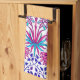 Toalla de mano en un modelo de William Morris del vintage de los jacintos, tulipanes y hojas, en las sombras de fucsia y suavemente del rosa, acentuadas con azul marino y turquesa, en un fondo blanco