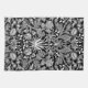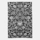 Toalla de mano en un patrón vintage de William Morris de jacintos, tulipanes y hojas, en tonos gris plateado / gris y blanco, sobre un fondo negro