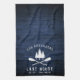 Hermosas toallas de cocina de temática rústica, con el nombre de su familia y "Lake House" u otro texto deseado junto con su fecha y ubicación establecidas. Este diseño personalizado y único presenta una silueta blanca de remos cruzados y pinos sobre una huella de tablas de madera de colores azules. Para ver más diseños como este, siéntase libre de visitar mi tienda aquí en "Zazzle.com/Rustic_Charm". ¡Gracias.