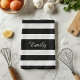 Trae un toque personal a sus tareas diarias de cocina con esta toalla personalizada de cocina a rayas blancas y negras. Escriba su nombre en el campo de plantilla para personalizarlo. Cena y accesorios de cocina a juego disponibles.
