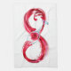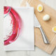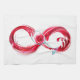 Símbolo infinito de flujo continuo de vino tinto vertiendo en vidrio de vidrio sobre fondo blanco.