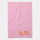 Toalla de cocina con iniciales de monograma modernas personalizadas en rosa naranja