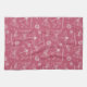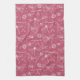Esta toalla de cocina de la naturaleza cuenta con una variedad de criaturas hechas a mano que incluyen mariposas, abejas, albañiles, saltamontes, libélulas, orugas, gusanos y moscas con el texto escrito a mano "insecto de amor" esparcido por todos lados. Ilustrado en blanco sobre un fondo rosado.