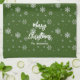 Elegante diseño moderno de Navidades festivos con diseño de copos de nieve sobre fondo verde con tipografía artística blanca con Feliz Navidad. Personaliza tu apellido.