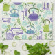 A beautiful hand drawn Japanese tea ceremony design. This print includes traditional teapots, tea leaves, flowers and tea making accessories.. perfect for tea lovers