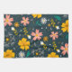 Un vibrante y caprichoso patrón floral sobre un fondo azul marino intenso, que presenta flores alegres amarillas, rosadas suaves y blancas brillantes con delicadas hojas verdes. La mezcla de flores tipo margarita y flores estilizadas crea una estética juguetona y animada, perfecta para evocar el encanto de un jardín primaveral en flor. El fuerte contraste de colores hace que cada detalle floral resalte, dando al diseño un aspecto alegre, decorativo y llamativo adecuado para uso culinario o de manualidades.