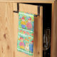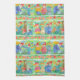 Una colorida toalla de cocina decorada con ilustraciones de gnomos dulces en el jardín visitando los insectos, regando las flores y jugando con las flores de estilo margarita melón rosa. ¡Diversión para cualquiera que disfrute de la jardinería!