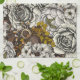 Patrón vectorial dibujado a mano con varias flores: rosas, cosmos, peones y arañas tarántulas