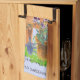 Toalla de cocina personalizada para los amantes del jardín. ilustracion acuático de un tranquilo huerto rural con valla de piquetes y maceta de flores de color marrón, césped, pájaro negro, mariposa y herramientas de jardinería. La plantilla de nombre está configurada para que agregue su nombre y cabeza de jardinero o texto personalizado (deje en blanco si no es necesario). Diseño atractivo con una tipografía de escritura con letra a mano elegante y la hermosa alegría de la naturaleza. Por favor, navegue por nuestra tienda para coordinar regalos de jardinería.