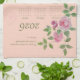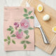 Elegant cottage core kitchen towel with botanical roses design, inspired by Ecuadorian roses, grown in the Andes Mountains, where they bloom all year long and benefit from the rich volcanic soil, the high altitude, and the long hours of sunlight resulting in vibrant and joyful colors. This design features a 2026 calendar and a template text that is easy to personalize on a Melon Pink background color. It is a Sunday through Saturday calendar.