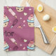 Brighten up your kitchen décor with this absorbent, personalized tea towel! It features the adorable, all-over kawaii pattern of smiling cupcakes (blue frosting), pink rolling pins, and whisks set against the pink checkered background. Customize this beautiful design with your family name or "Sweet Treats Kitchen" for a thoughtful hostess or housewarming gift. The cute aesthetic of this towel coordinates perfectly with the purple kawaii Mommy & Me apron collection.