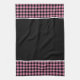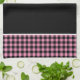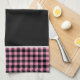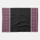 This kitchen towel is shown in a cute black and pink color buffalo plaid print design.
