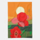 Paño De Cocina La pradera de amapola roja al atardecer