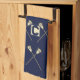 Lacrosse stick design on navy blue background. To personalize, edit text.