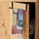 Un colorido diseño abstracto en una toalla lista para enfrentar los deberes de cocina.