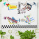 Toalla de cocina de Las Vegas con los elementos icónicos del diseño incluyendo el signo positivo famoso y una muestra retra del vintage de Ls céntrico Vegas.