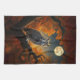 Un gran búho de cuerno en un árbol en otoño bajo la luz de una luna llena.