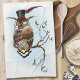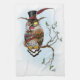 Un gran búho de cuerno de vapor. Un sombrero superior, chaleco, reloj de bolsillo y un monóculo están todos en esta lechuza Victoria steampunk.