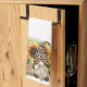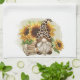 Un pequeño y adorable gnomo en una huella de leopardo ha reunido algunos girasoles.