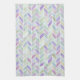 Un patrón de chevron en rayas y acuarela. Los colores incluyen púrpura, verde y azul, con alguna mezcla ocasional de formas triangulares.