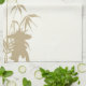 Tallos y hojas de bambú y linterna de piedra japonesa