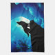 Paño De Cocina Lobo en silueta aullando a la luna llena