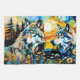 Colorida acuarela de lobos grises al atardecer en flores silvestres AI Arte generado por minx267