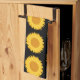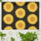 Girasoles de un modelo en sombras de amarillo brillante y del naranja - tonos marrones. Este estampado de flores tiene un fondo negro. Flores amarillas soleadas agradables de las características del este diseño en un modelo.