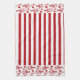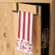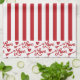 A Red Striped Valentine's Day Kitchen Dish Towel With Love Arrows And Hearts On The Boarder