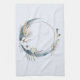 Una toalla de cocina con un ilustracion místico. Luna de media luna azul oscuro con un elegante contorno de círculo delgado y flores blancas a lo largo de sus bordes.