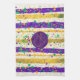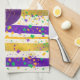 Bring the opulence and celebratory spirit of Mardi Gras into your living space with this luxurious decorative kitchen towel, inspired by the timeless elegance of carnival traditions. The illustration features bright colorful stripes in purple, green, and gold, sprinkled with confetti patterns, playful festive style, vibrant and cheerful. In the center is text that can be personalized with your Name or Monogram. You can also remove it if you want the pattern only.